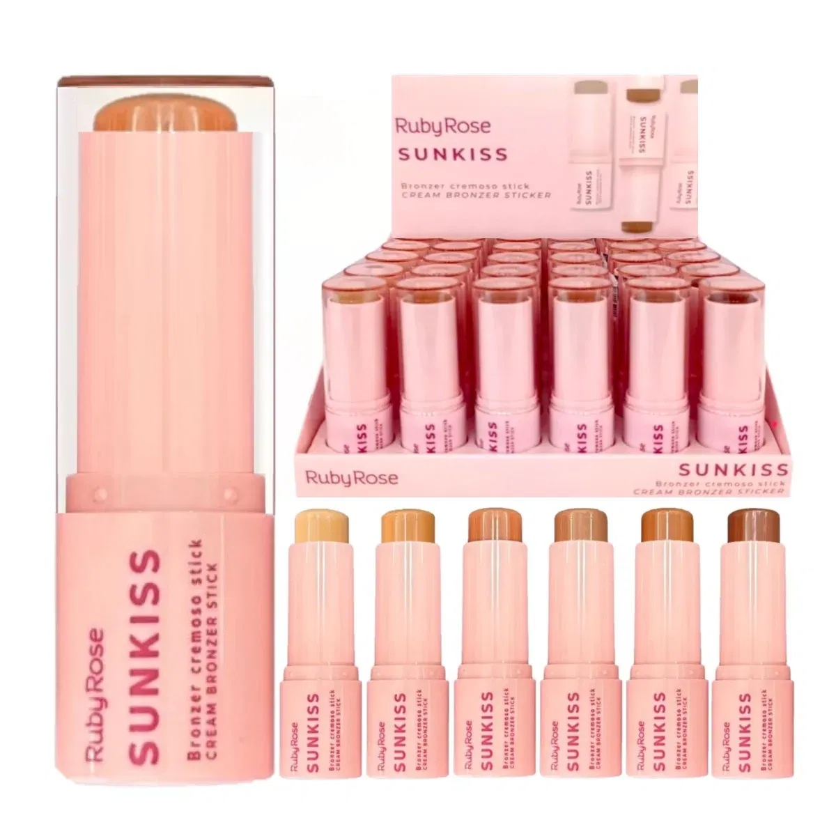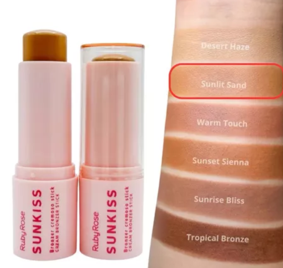 El bronceador en barra cremoso Sunkiss de Ruby Rose proporciona un bronceado natural y luminoso. Su fórmula cremosa permite una aplicación rápida y sencilla, fundiéndose perfectamente con la piel para un acabado suave y profesional. Además, ofrece un efecto duradero, realzando las zonas del rostro con un bronceado sutil y sofisticado.