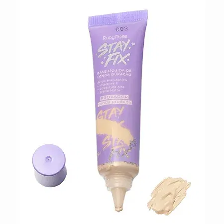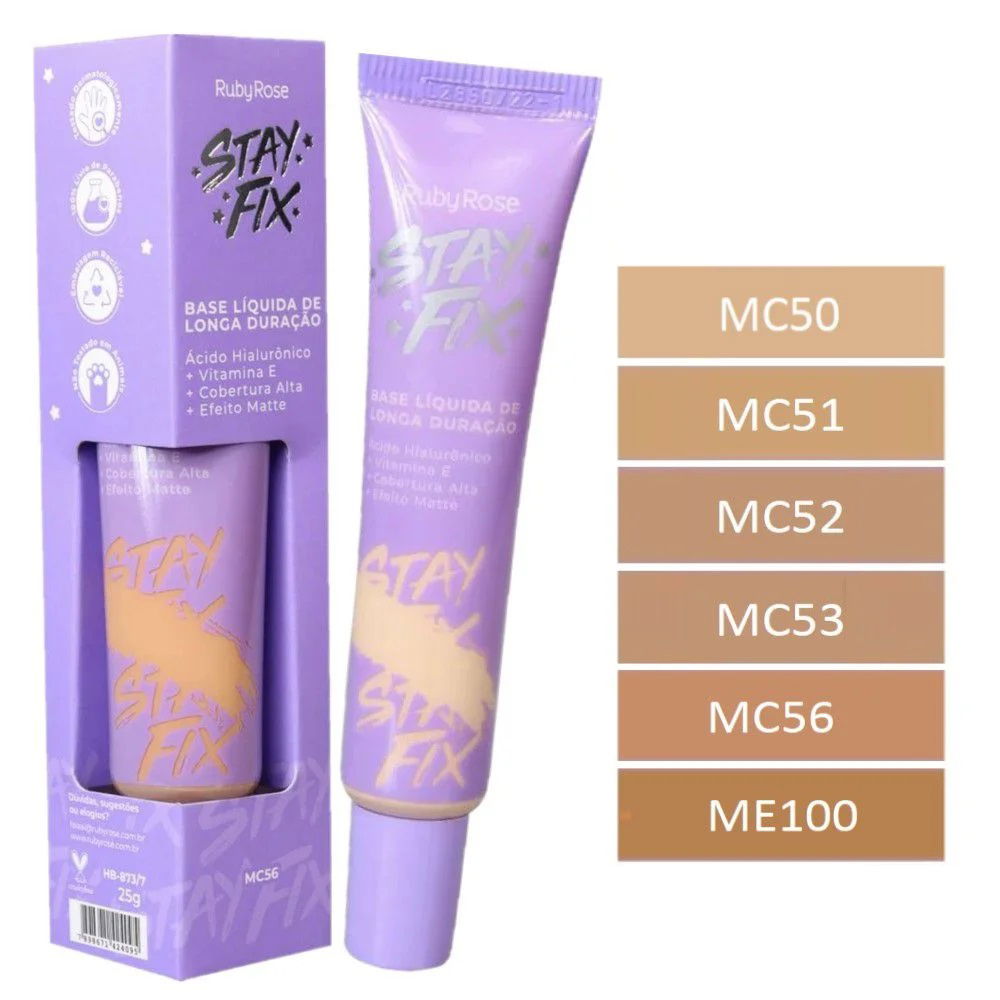 La base líquida de larga duración STAY FIX ofrece una alta cobertura con largas horas de uso para un acabado impecable y resistente a la rutina.
