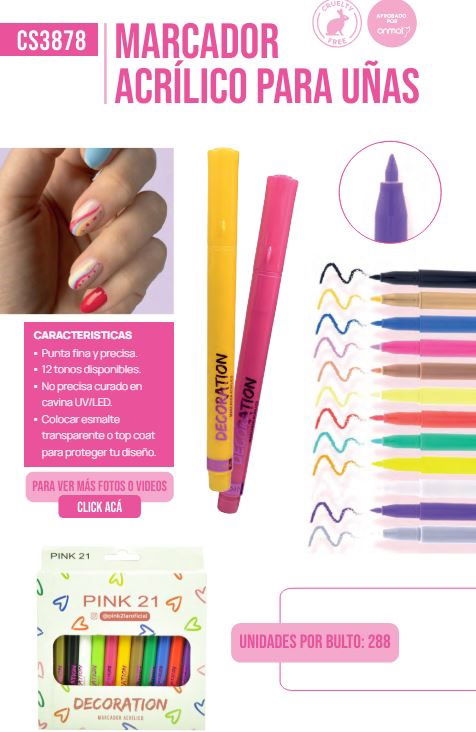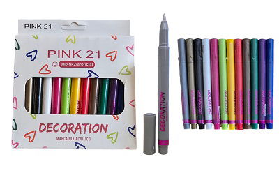 Pink 21 Marcadores Acrilicos Para Uñas Pack x12