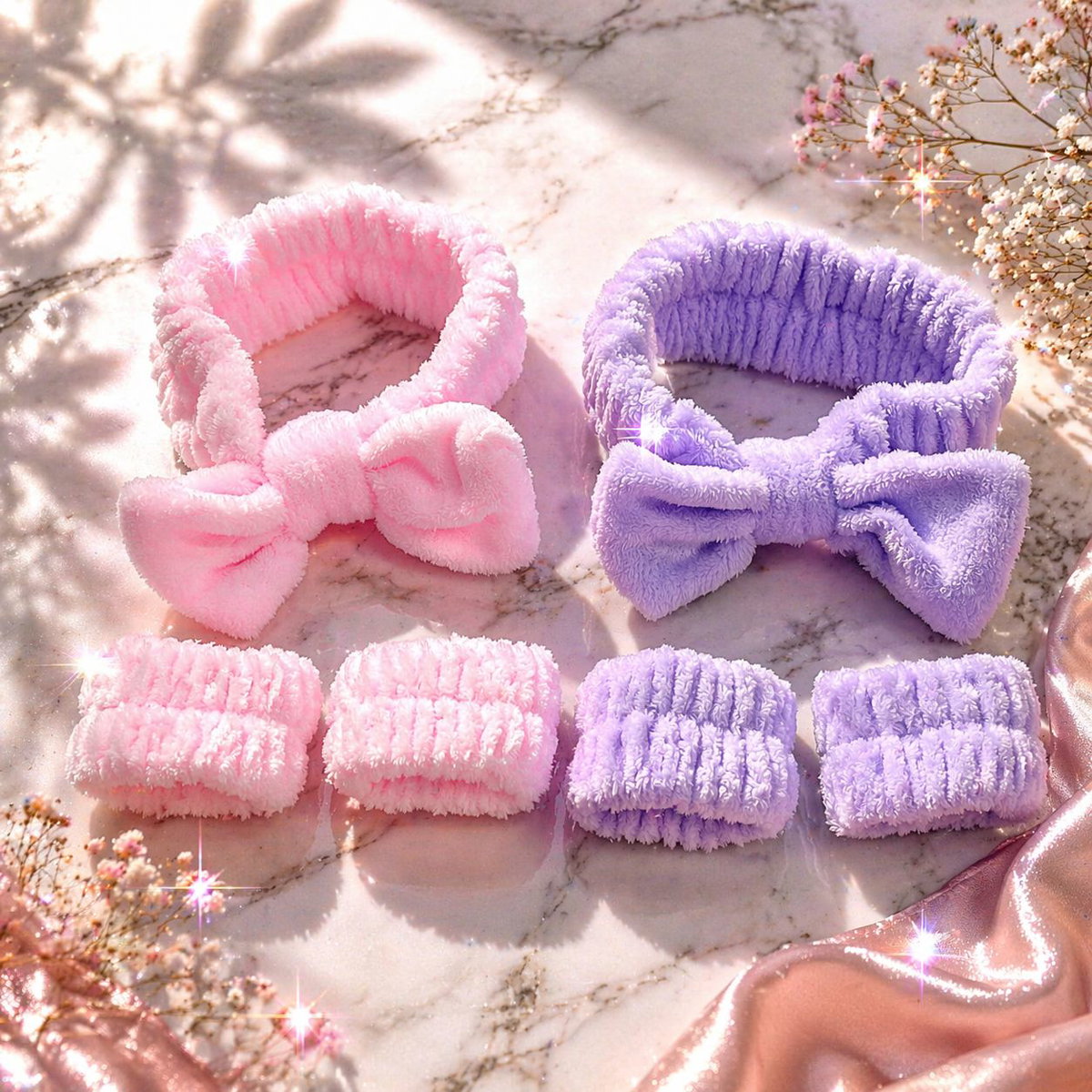 Vincha Spa Moño peluche + 2 muñequeras