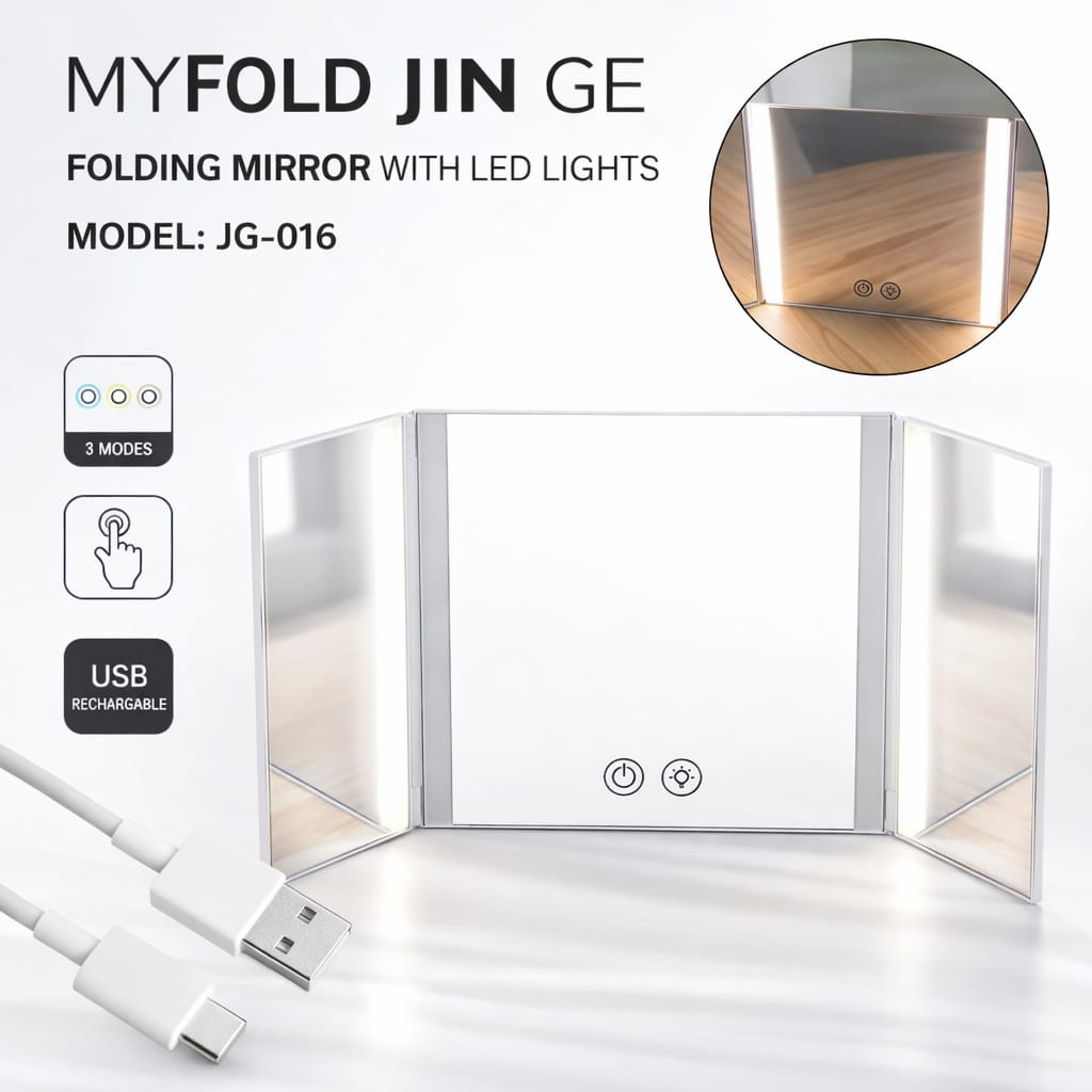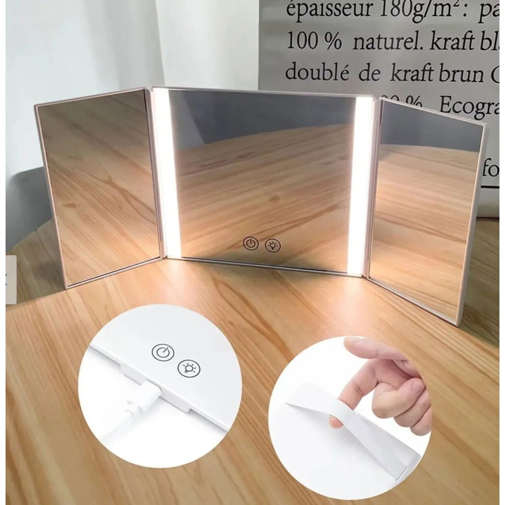 - [Luces LED con configuraciones ajustables] El espejo plegable con luces LED proporciona 3 temperaturas de color y brillo ajustable para un maquillaje versátil en cualquier entorno.