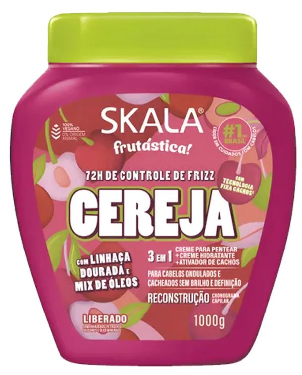 La mascarilla vegana Skala Cereja Frutastica es la solución ideal para quienes buscan un tratamiento intensivo para el cabello. Diseñada especialmente para cabellos ondulados, rizados, dañados y teñidos, esta crema hidratante ofrece una experiencia de reconstrucción profunda que revitaliza y nutre cada hebra.